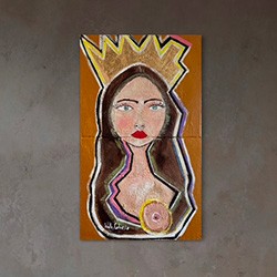 Travail peinture sur du lin brut tendu et monté en diptyque